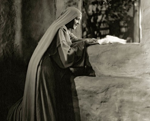 The Utah-born artist was introduced to DeMille by the painter-photographer-director Ferdinand Pinney Earle, who had worked on M-G-M’s Ben-Hur. DeMille hired Mortensen to shoot both scene stills and special art for The King of Kings (1927). It was a fortuitous connection. Few American photographers could have distilled the reality created on the set by Mitch Leisen and Pev Marley as Mortensen did. To lend a painterly quality to his images, he placed hand-etched filters over the photographic paper as he printed each negative in his Hollywood Boulevard studio. The result was a reverent, masterly portfolio, unique even for the period. Mortensen opened a photography studio and school in Laguna Beach in the 1930s, co-authored numerous books, and in 1949 was awarded the prestigious Harold Hood Medal by the Royal Photographic Society.